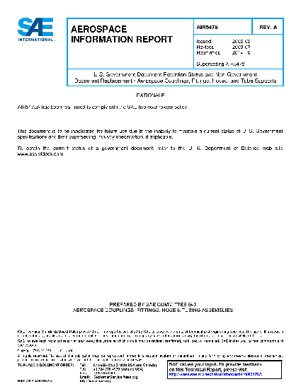 U.S. Government Document Retention Status and Non-Government Document Replacement - Aerospace Couplings, Fittings, Hoses, and Tube Supports