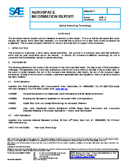 The aerospace industry requires precise standards for avionics system design. To ensure that the aerospace fiber optics industry also adopts these same high standards, it is essential that a common set of fiber optic system procedures be established. This document provides reference for common technical terms in support of the procedures.