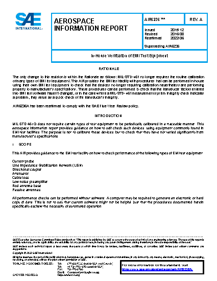 This AIR provides guidance to the EMI test facility on how to check performance of the following types of EMI test equipment: