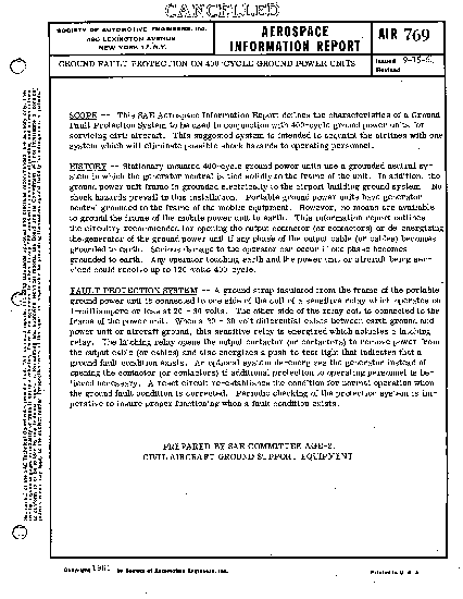 Ground Fault Protection on 400-Cycle Ground Power Unit