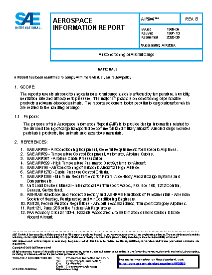 The report presents air conditioning data for aircraft cargo which is affected by temperature, humidity, ventilation rate and atmospheric pressure. The major emphasis is on conditioning of perishable products and warm-blooded animals. The report also covers topics peculiar to cargo aircraft or which are related to the handling of cargo.
