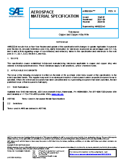This specification covers established inch/pound manufacturing tolerances applicable to copper and copper alloy wire ordered to inch/pound dimensions. These tolerances apply to all conditions, unless otherwise noted.