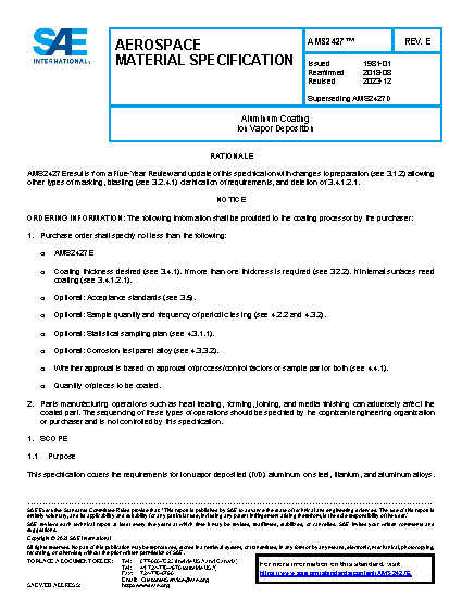 This specification covers the requirements for ion vapor deposited (IVD) aluminum on steel, titanium, and aluminum alloys.