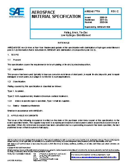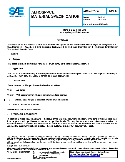 This specification covers the requirements for brush plating of tin-zinc by electrodeposition.