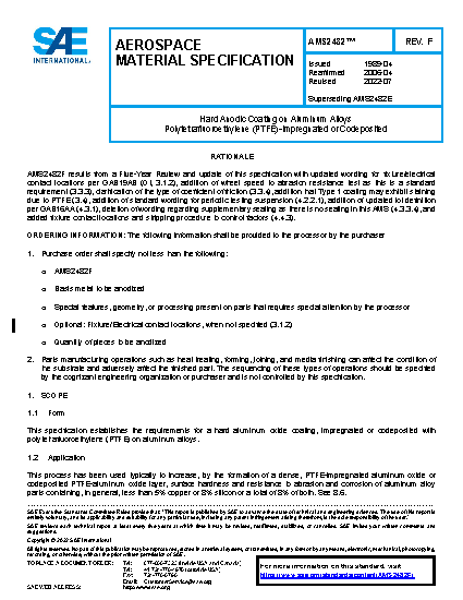 This specification establishes the requirements for a hard aluminum oxide coating, impregnated or codeposited with polytetrafluoroethylene (PTFE) on aluminum alloys.