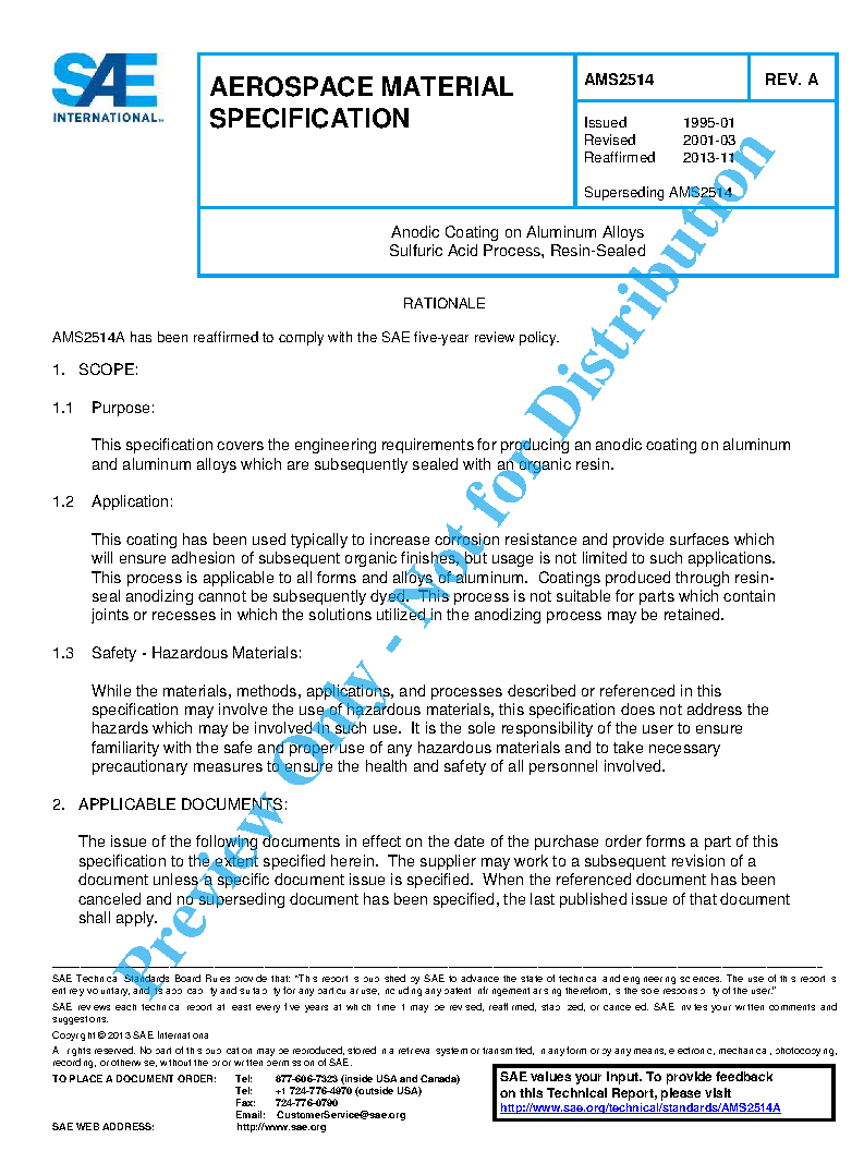 Anodic Coating on Aluminum Alloys Sulfuric Acid Process, Resin-Sealed