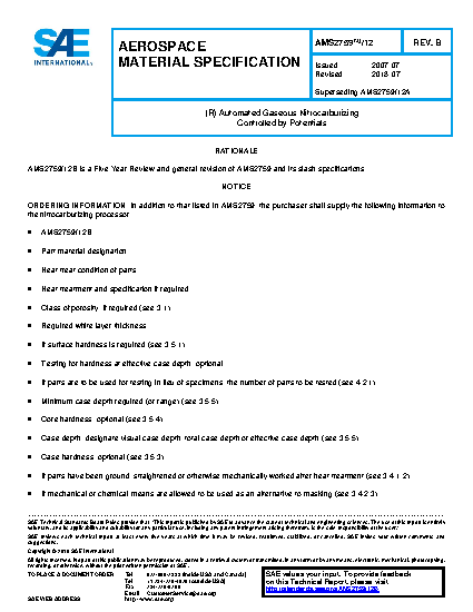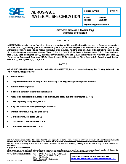 This specification covers the requirements for producing a continuous compound zone (white layer) with controlled extent of porosity by means of a gaseous process, automatically controlled to maintain nitriding and carburizing potentials that determine properties of the nitrocarburized surface. Automatic control is intended to ensure repeatability of nitrogen and carbon content of the compound zone, which influences properties such as wear and corrosion resistance, ductility, and fatigue strength.