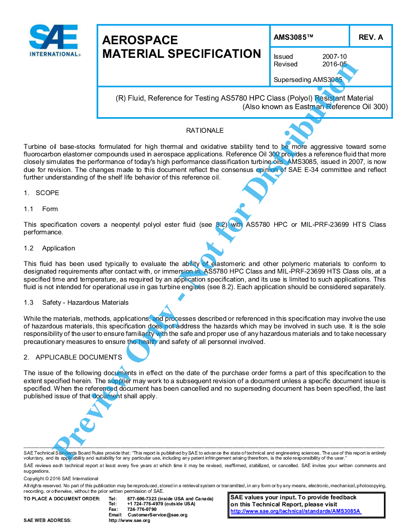 This specification covers a neopentyl polyol ester fluid (see 8.2) with AS5780 HPC or MIL-PRF-23699 HTS Class performance.