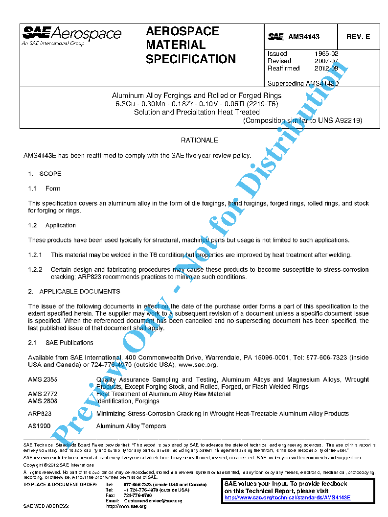 Aluminum Alloy Forgings and Rolled or Forged Rings 6.3Cu - 0.30Mn - 0.18Zr - 0.10V - 0.06Ti (2219-T6) Solution and Precipitation Heat Treated