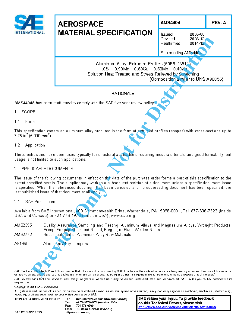 This specification covers an aluminum alloy procured in the form of extruded profiles (shapes) with cross-sections up to 7.75 square inches (5000 mm2).