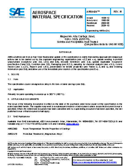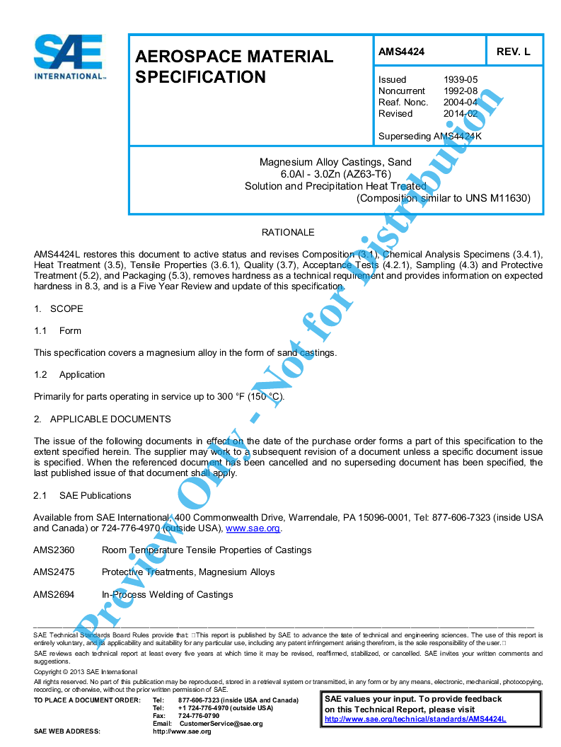 Magnesium Alloy Castings, Sand 6.0Al - 3.0Zn (AZ63-T6) Solution and Precipitation Heat Treated