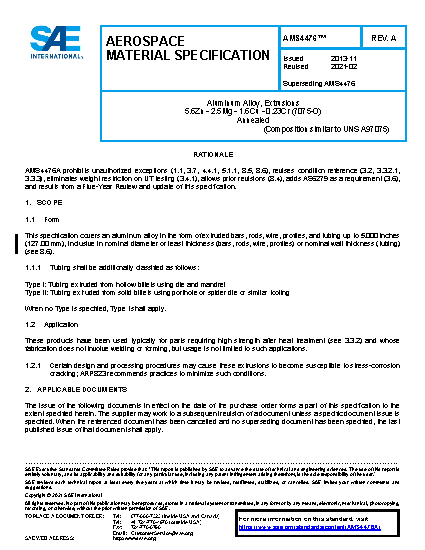 This specification covers an aluminum alloy in the form of extruded bars, rods, wire, profiles, and tubing.