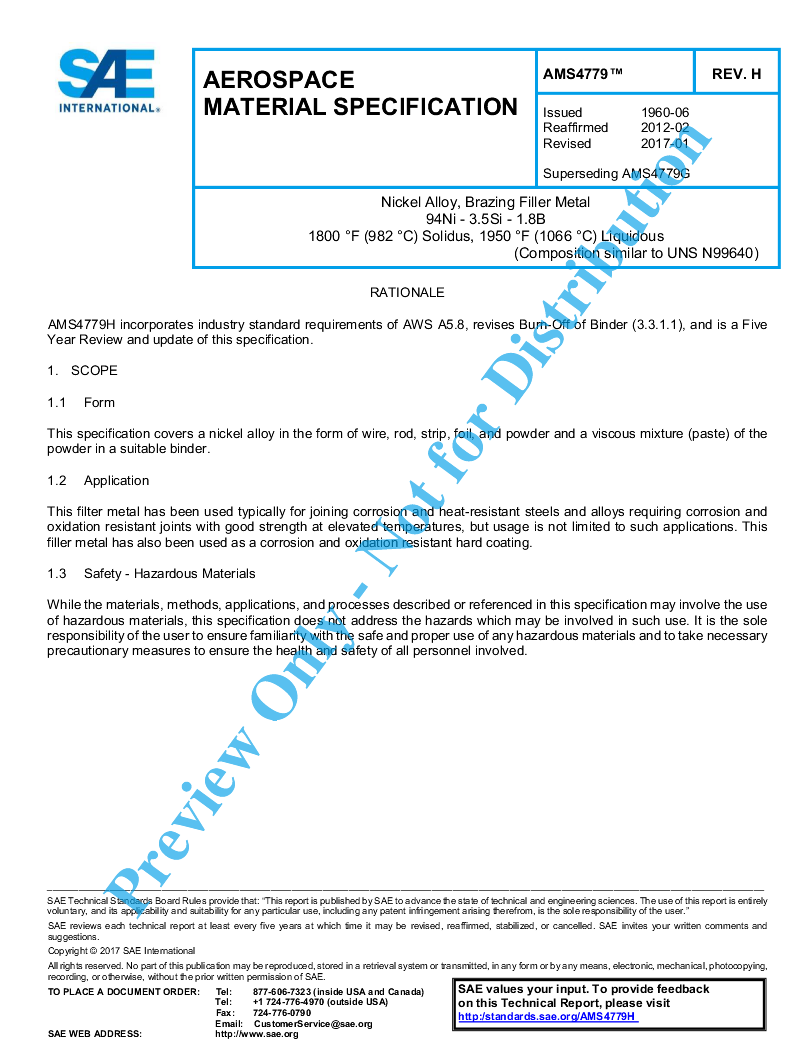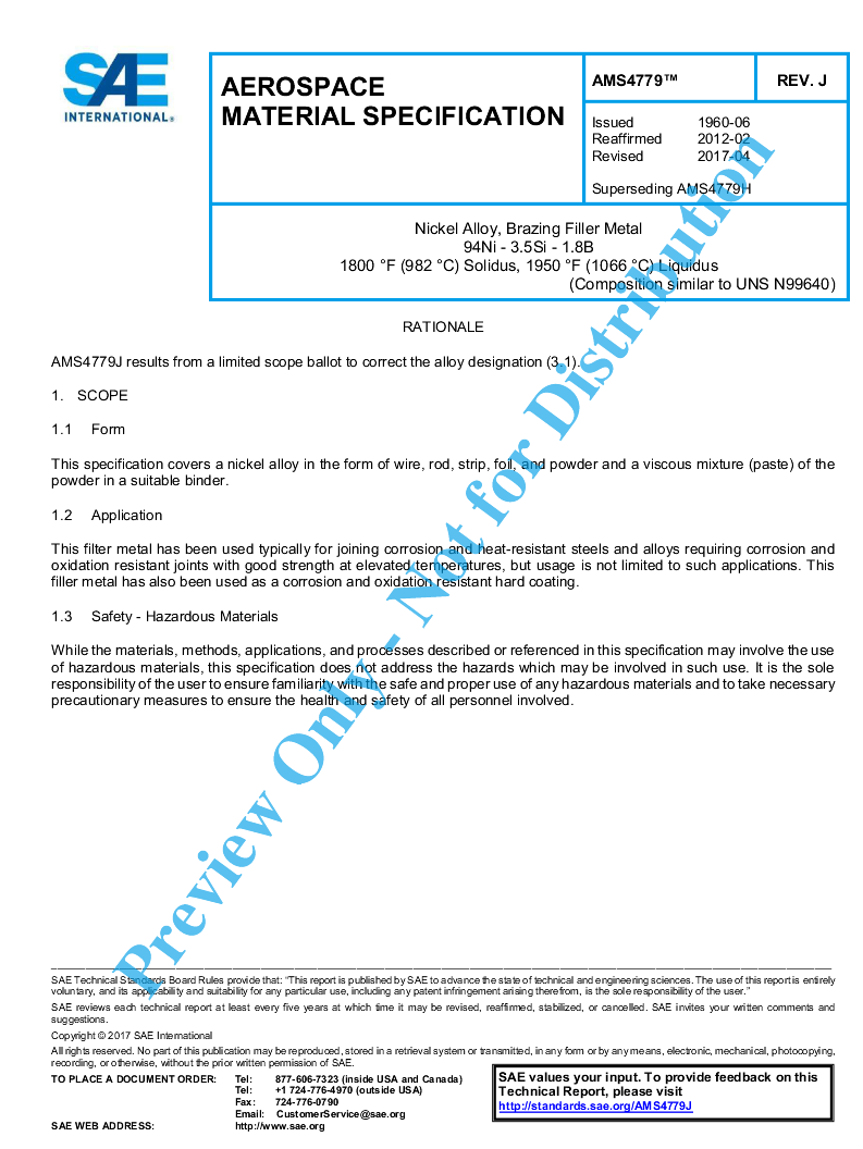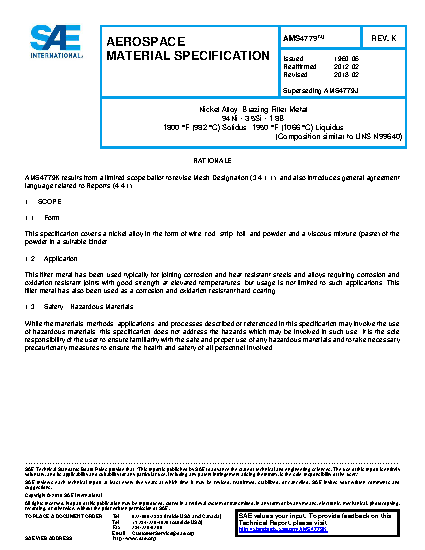 This specification covers a nickel alloy in the form of wire, rod, strip, foil, and powder and a viscous mixture (paste) of the powder in a suitable binder.