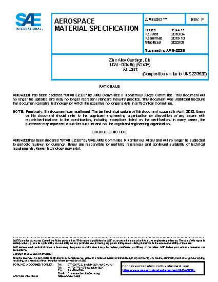 Zinc Alloy Castings, Die 4.0Al – 0.04Mg (AG40A) As Cast