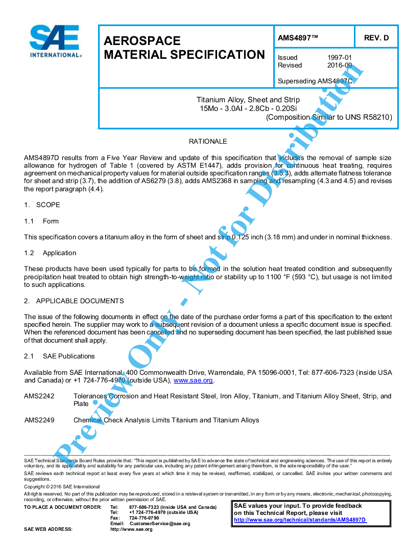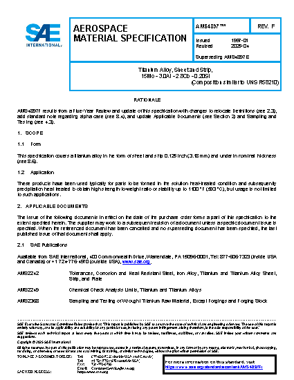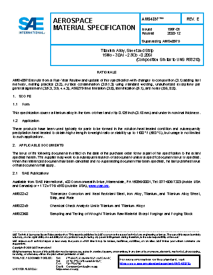 Titanium Alloy, Sheet and Strip 15Mo - 3.0AI - 2.8Cb - 0.20Si