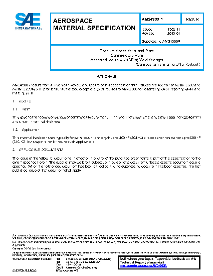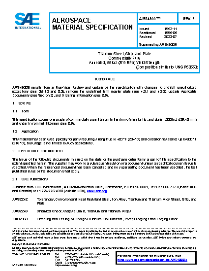 Titanium Sheet, Strip, and Plate Commercially Pure Annealed, 55 ksi (379 MPa) Yield Strength