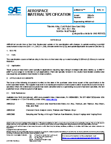 This specification covers a titanium alloy in the form of sheet and strip up to and including 0.125 inch (3.18 mm) in thickness.