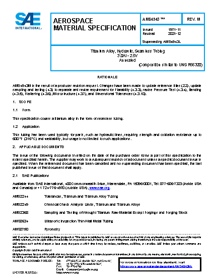 This specification covers a titanium alloy in the form of seamless tubing.