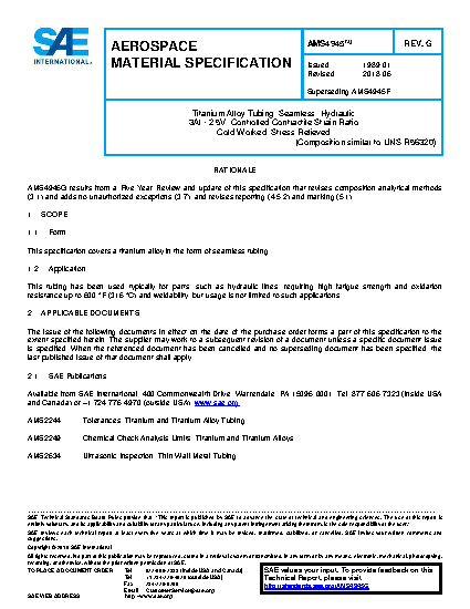Titanium Alloy Tubing, Seamless, Hydraulic 3Al - 2.5V, Controlled Contractile Strain Ratio Cold Worked, Stress Relieved