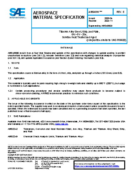 Titanium Alloy Sheet, Strip, and Plate 6Al - 6V - 2Sn Solution Heat Treated and Aged