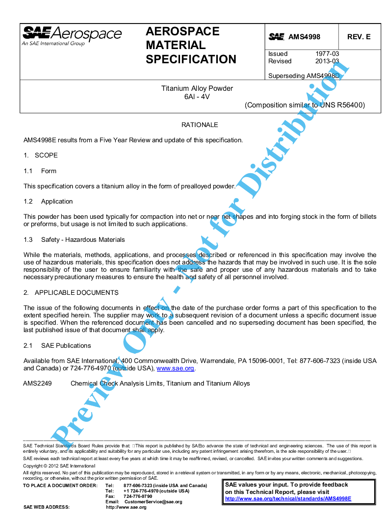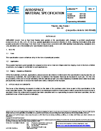 This specification covers a titanium alloy in the form of prealloyed powder.