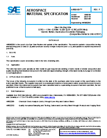 Steel, Welding Wire 0.78Cr - 1.8Ni - 0.35Mo - 0.20V (0.33 - 0.38C)(4335 Mod) Vacuum Melted, Environment Controlled Packaging