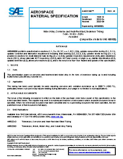This specification covers a corrosion and heat-resistant nickel alloy in the form of seamless tubing.