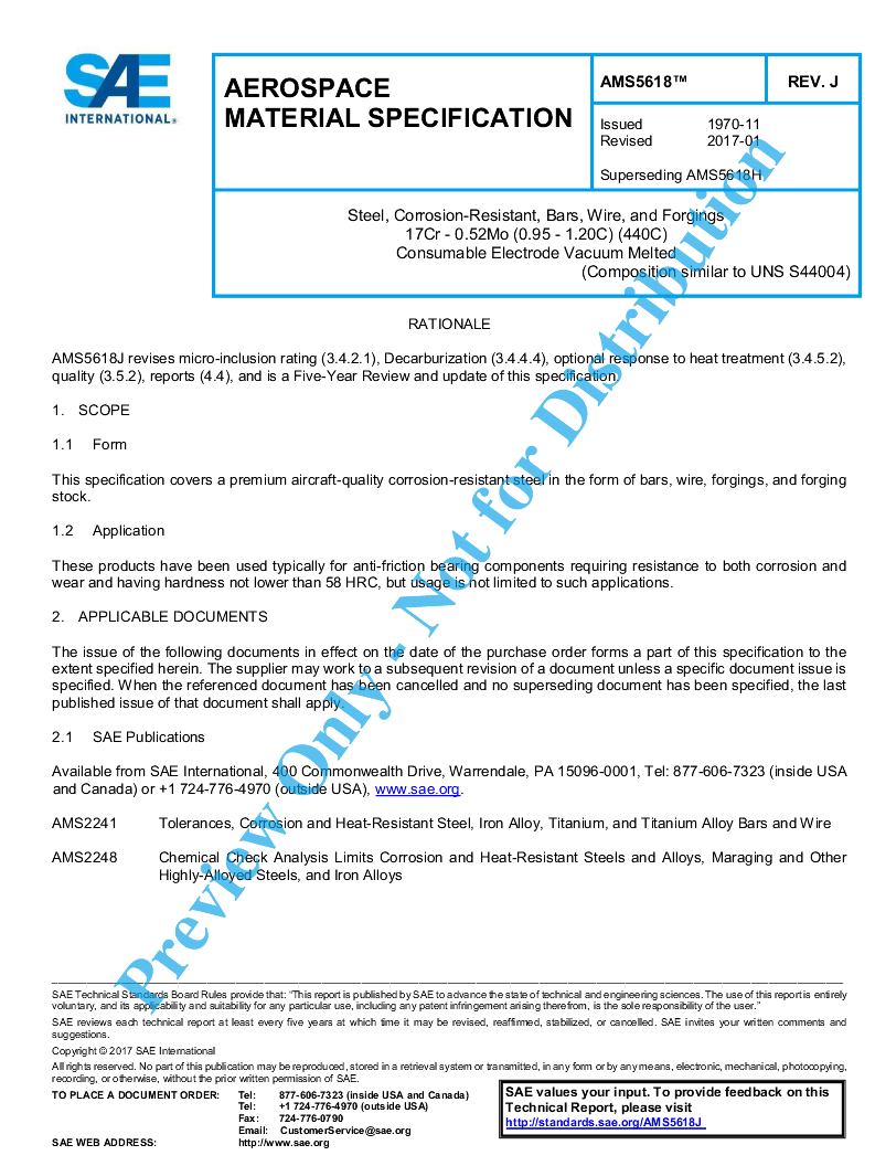 This specification covers a premium aircraft-quality, corrosion-resistant steel in the form of bars, wire, forgings, and forging stock.