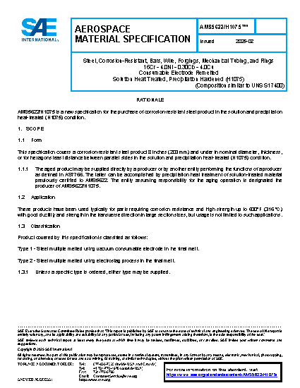 SAE AMS 5622/H 1075:2025-02-25