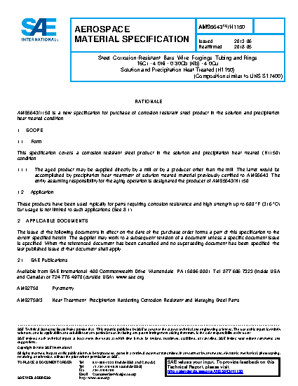 SAE AMS 5643/H 1150A:2022-01-20