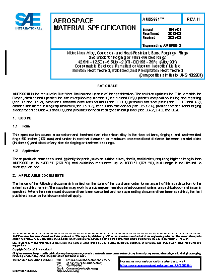 SAE AMS 5661H:2024-03-12