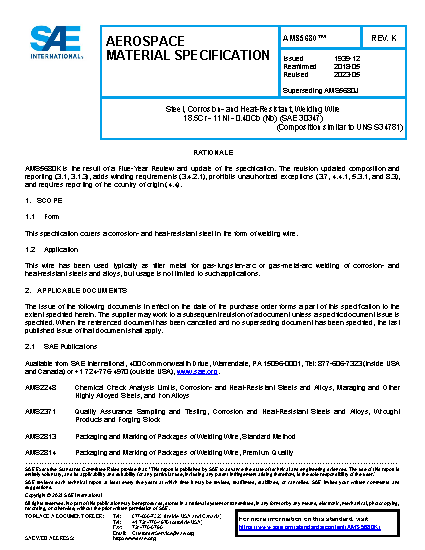 This specification covers a corrosion and heat-resistant steel in the form of welding wire.