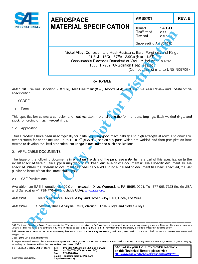 Nickel Alloy, Corrosion- and Heat-Resistant, Bars, Forgings, Flash Welded Rings and Forging Stock 41.5Ni - 16Cr - 37Fe - 2.9Cb (Nb) - 1.8Ti Consumable Electrode Remelted or Vacuum Induction Melted 1800 °F (982 °C) Solution Heat Treated