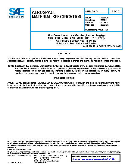SAE AMS 5746G:2022-06-02