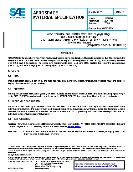 SAE AMS 5769H:2025-11-03