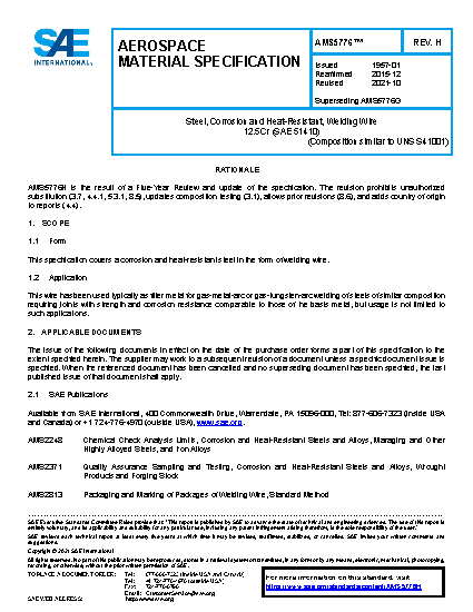 SAE AMS 5776H:2021-10-12