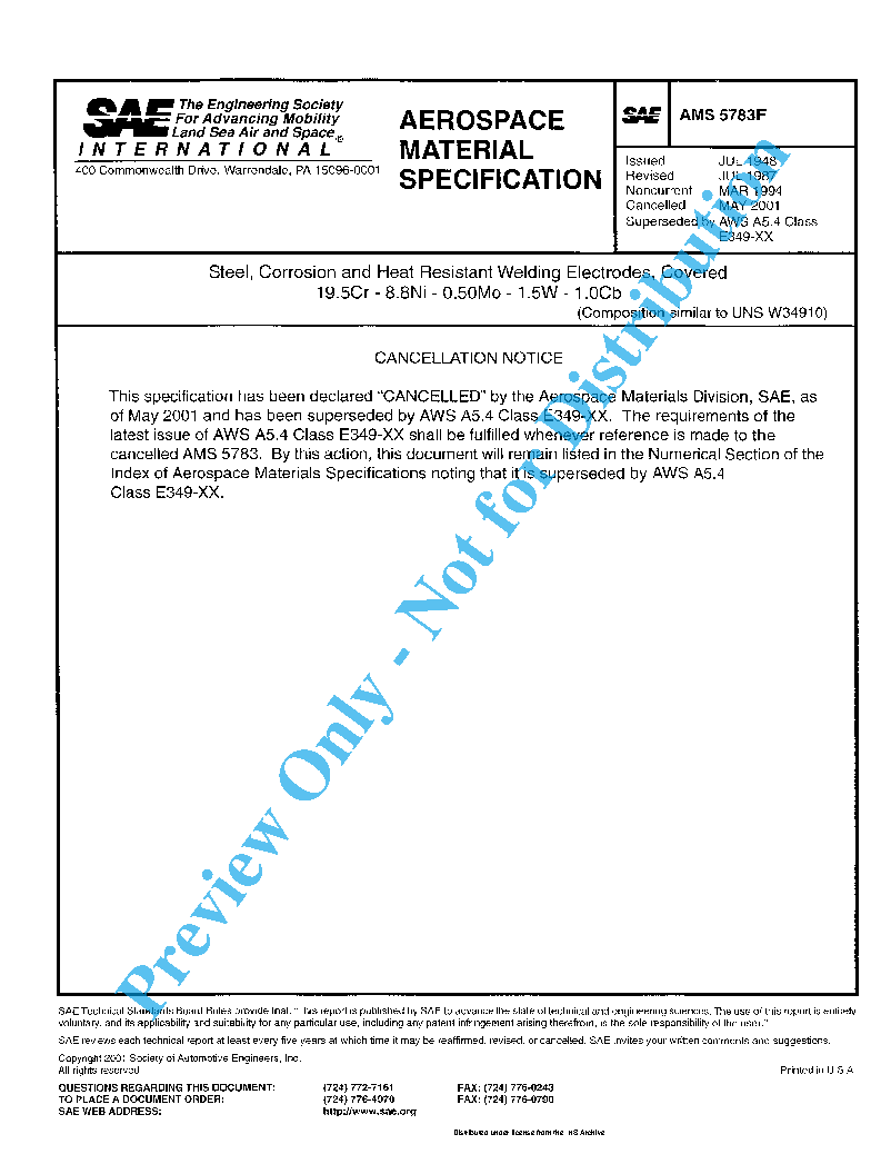 SAE AMS 5783F:2001-05-01