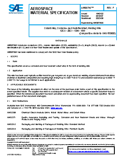 SAE AMS 5796F:2023-05-16