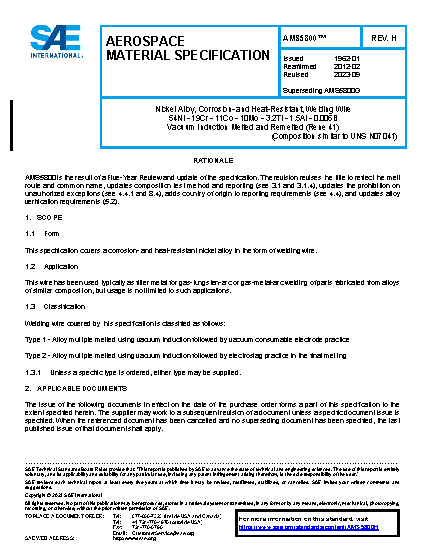 SAE AMS 5800H:2023-09-28