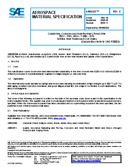 This specification covers a corrosion and heat-resistant cobalt alloy in the form of round wire 0.140 inch (3.56 mm) and under in nominal diameter supplied in straight lengths. (See 8.4.)