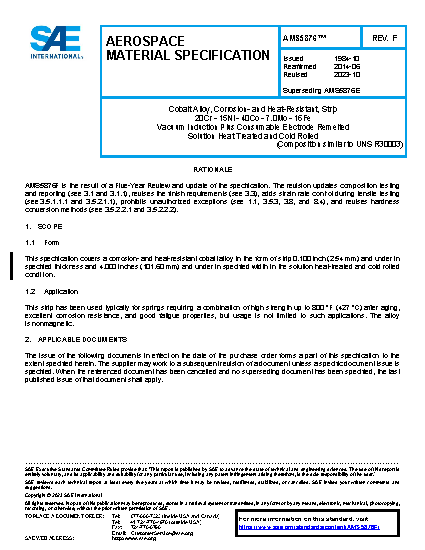 SAE AMS 5876F:2023-10-16