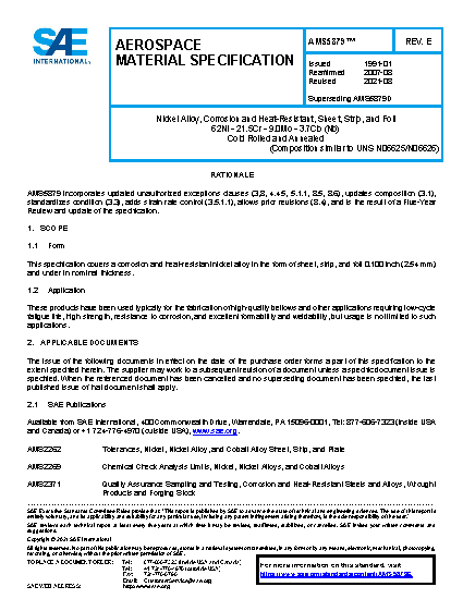 This specification covers a corrosion and heat-resistant nickel alloy in the form of sheet, strip, and foil 0.100 inch (2.54 mm) and under in nominal thickness (See 8.4).