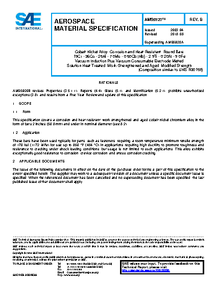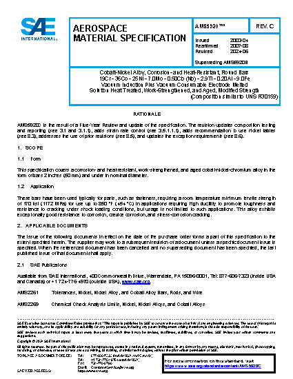 This specification covers a corrosion and heat-resistant, work-strengthened and aged cobalt-nickel-chromium alloy in the form of bars 2 inches (50.8 mm) and under in nominal diameter (see 8.2).