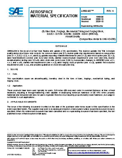 SAE AMS 6423K:2025-10-23
