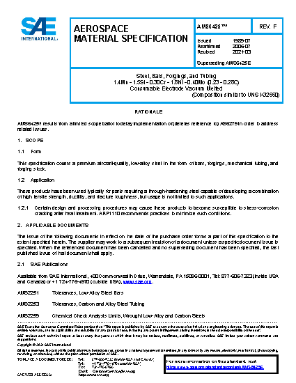 This specification covers a premium aircraft-quality, low-alloy steel in the form of bars, forgings, mechanical tubing, and forging stock.