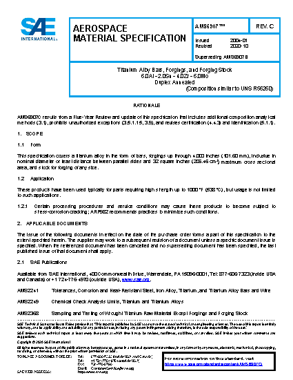 Titanium Alloy Bars, Forgings and Forging Stock 6.0Al - 2.0Sn - 4.0Zr - 6.0Mo Duplex Annealed