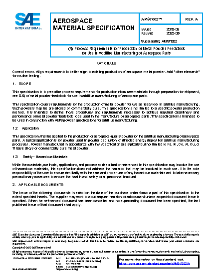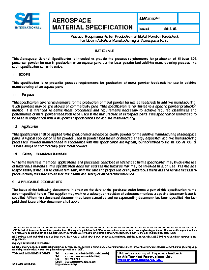 This specification is to prescribe process requirements for production of metal powder feedstock for use in additive manufacturing of aerospace parts.