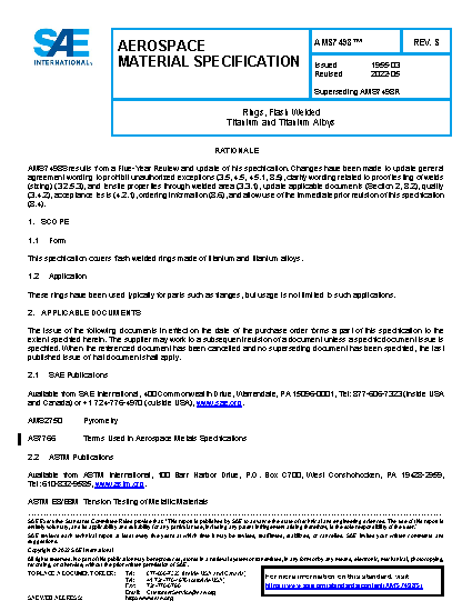 This specification covers flash welded rings made of titanium and titanium alloys.