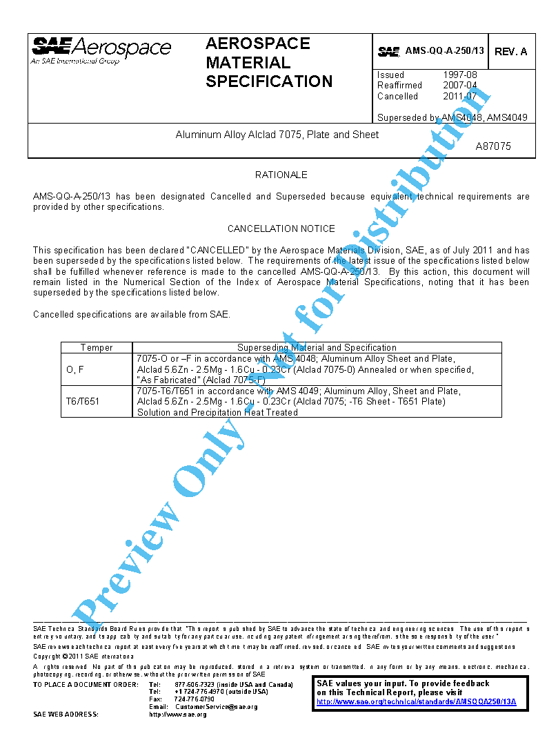SAE AMS-QQ-A-250/13A:2011-07-22