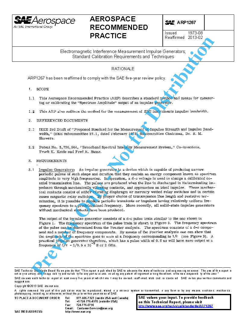 Electromagnetic Interference Measurement Impulse Generators; Standard Calibration Requirements and Techniques